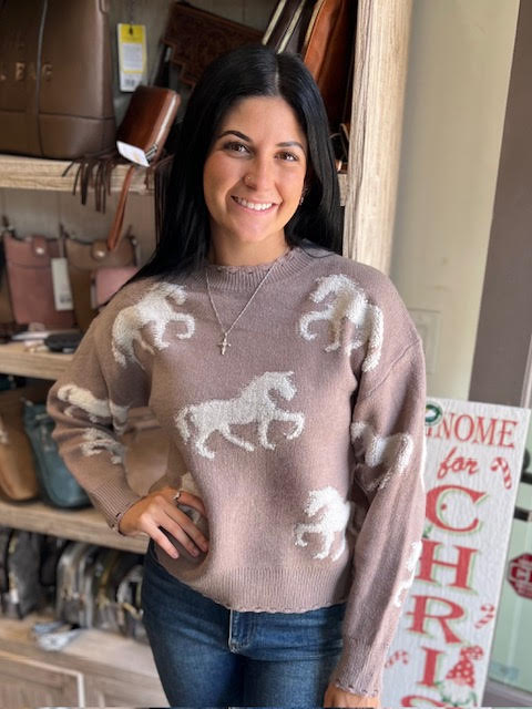 ee:some Horse Textured Long Sleeve Distressed Sweater ✨
