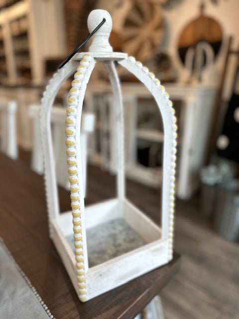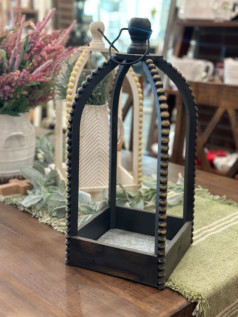 Beaded Wood Lantern is perfect for candles, greenery, and seasonal decor.