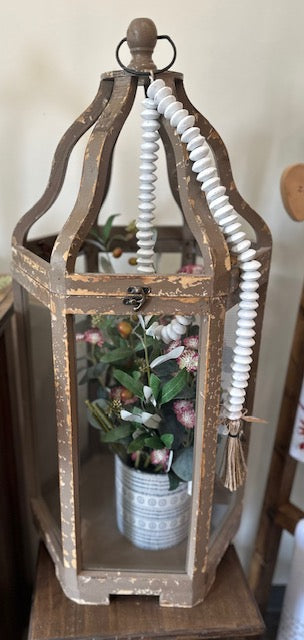Wooden Lantern is perfect for candles, greenery, and seasonal decor.