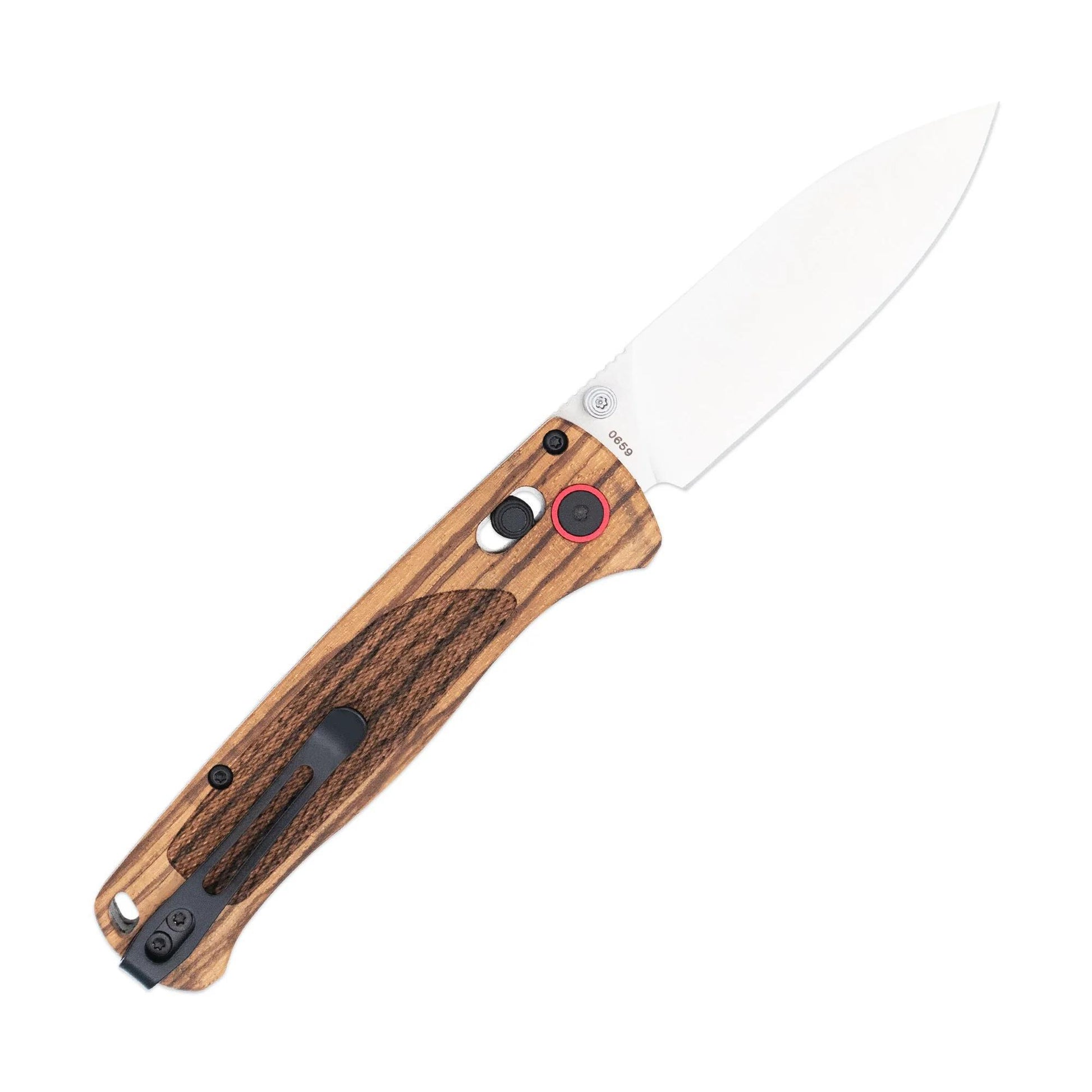 The Zebrawood Bar Lock knife combines sleek functionality with distinctive natural aesthetics. Featuring a durable aluminum body, it is both lightweight and robust, designed to handle tough tasks with ease. The striking Zebrawood scales add a touch of elegance and uniqueness, making each knife one-of-a-kind. The D2 steel blade is equipped with thumb studs for easy one-handed opening, offering a smooth and reliable deployment every time. With a right-hand tip-up carry clip and a lanyard hole, this knife ensures convenient and versatile carry options. Whether you're using it for everyday tasks or as a collector's piece, the Zebrawood Bar Lock is a reliable and stylish choice.: