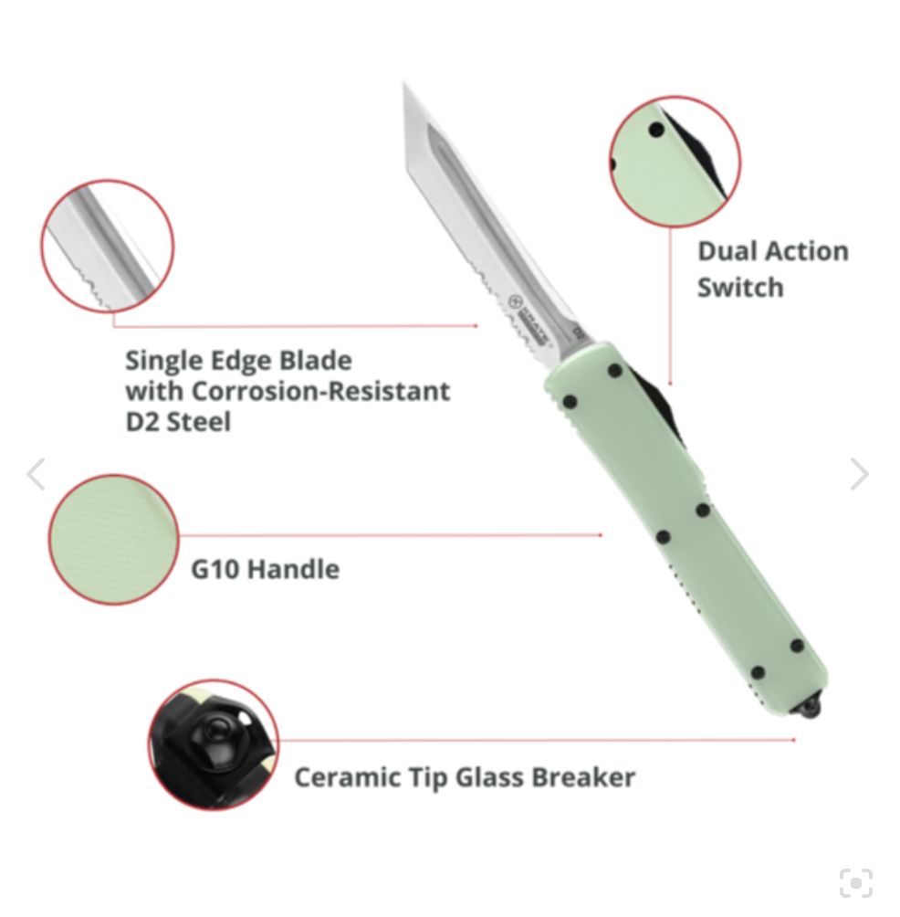 Krate Tactical OTF Knives are designed for everyday carry—lightweight, tough, and ready for any situation. Crafted with corrosion-resistant D2 steel, the blade holds up in tough conditions. The Jade G10 handle offers a secure, comfortable grip, while the thumb slide activation ensures quick, one-handed use.