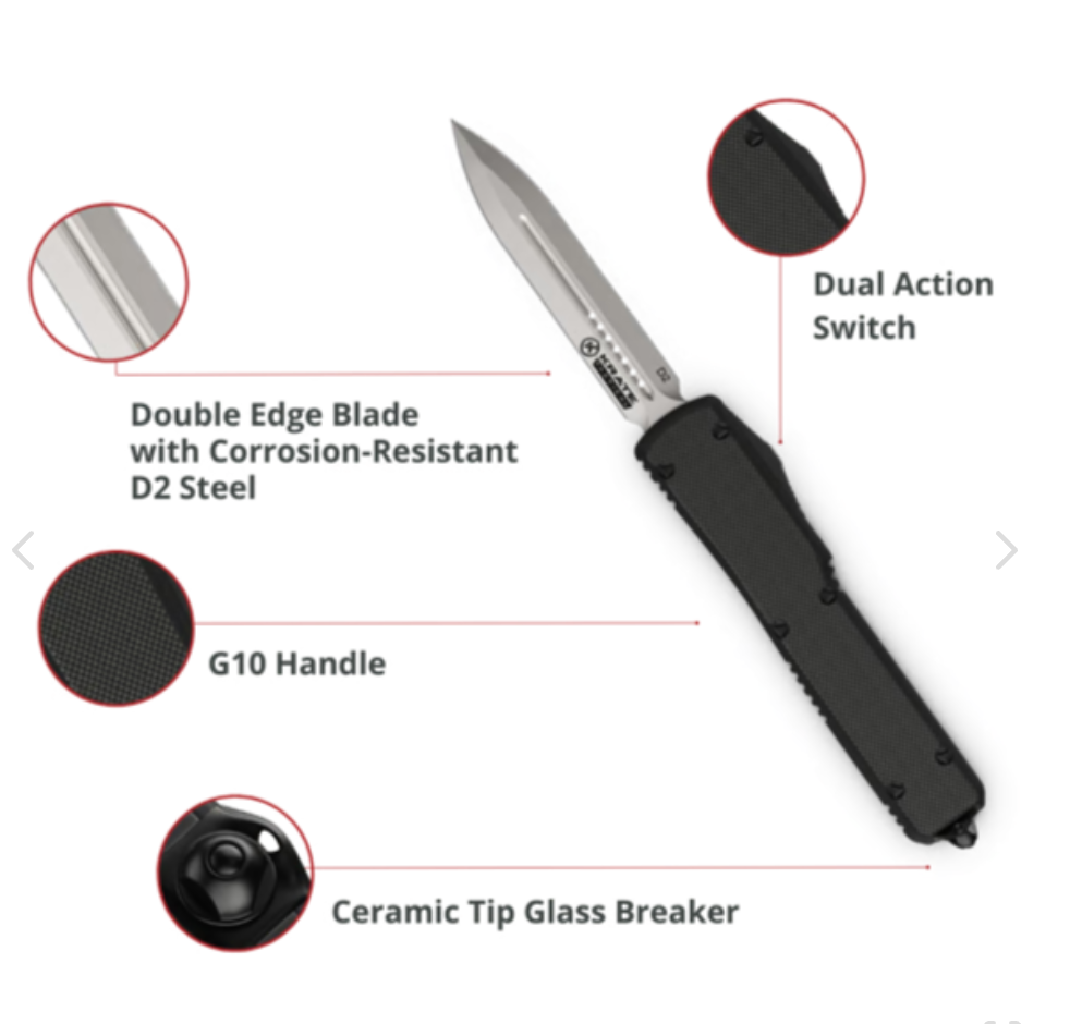 Krate Tactical OTF Knives are designed for everyday carry—lightweight, tough, and ready for any situation. Crafted with corrosion-resistant D2 steel, the blade holds up in tough conditions. The G10 handle offers a secure, comfortable grip, while the thumb slide activation ensures quick, one-handed use.