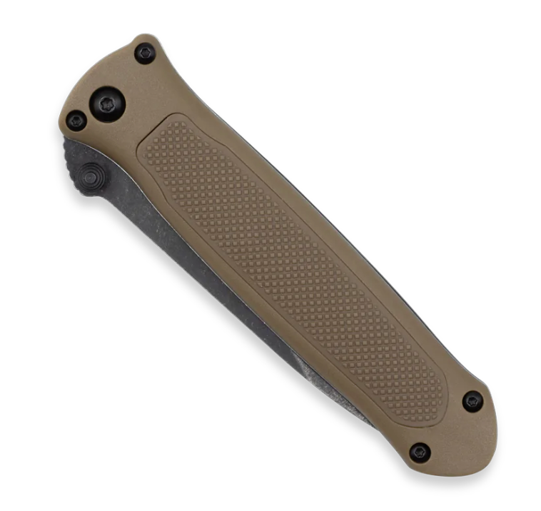 - G-10 handle with knurled rubberized grip