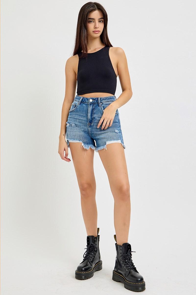RISEN RDS6146 HIGH RISE FRONT DISTRESSED SHORTS
