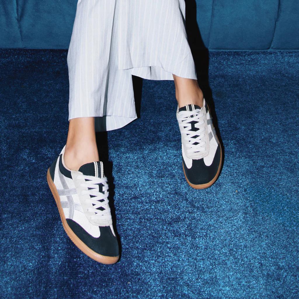 SASHA is where style meets comfort. With sleek black suede, breathable beige mesh, and metallic silver faux leather stripes, it's a bold mix of modern edge and timeless design. The soft white faux leather heel tab and gum rubber sole provide all-day comfort and durability, while the light gray laces add a subtle pop. Ready to turn heads and keep you comfy? SASHA's got you covered.