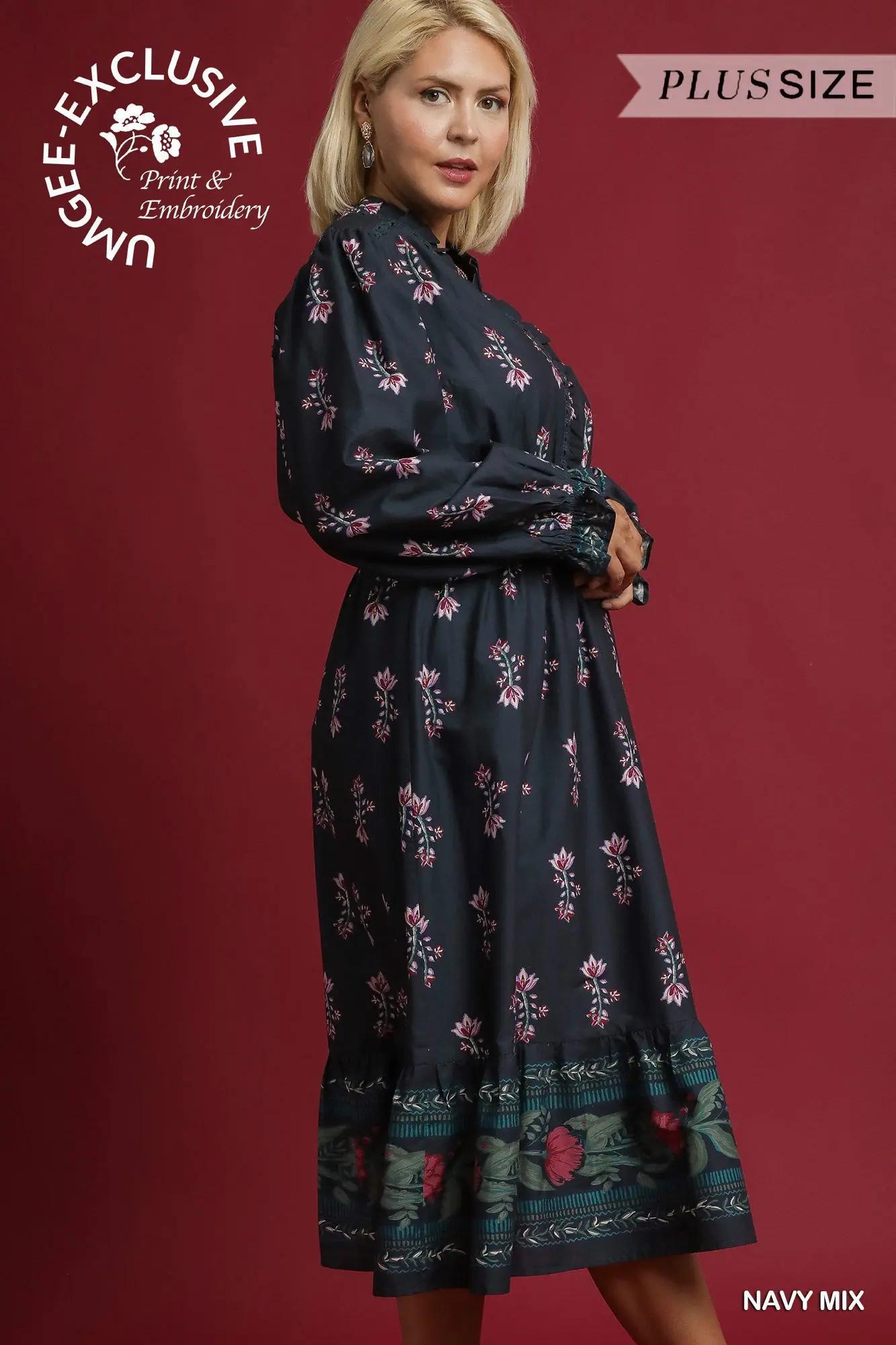 UMGEE PLUS Size Dress Navy Mix Flora Maxi Dress