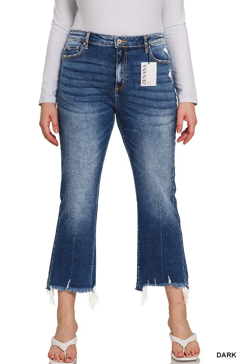 Zenana DNP-1646DDX Plus kick crop flare denim pants